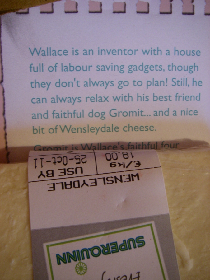 Check out my Supa-Socks! We picked these up at Boots pharmacy. They also had a Wallace & Gromit radio and a pair of Wallace & Gromit slippers which I've got my eye on. Later we got cracking and went to Superquinn where they stock a nice Wensleydale. Mmmmm. Cheeeeese, Gromit!